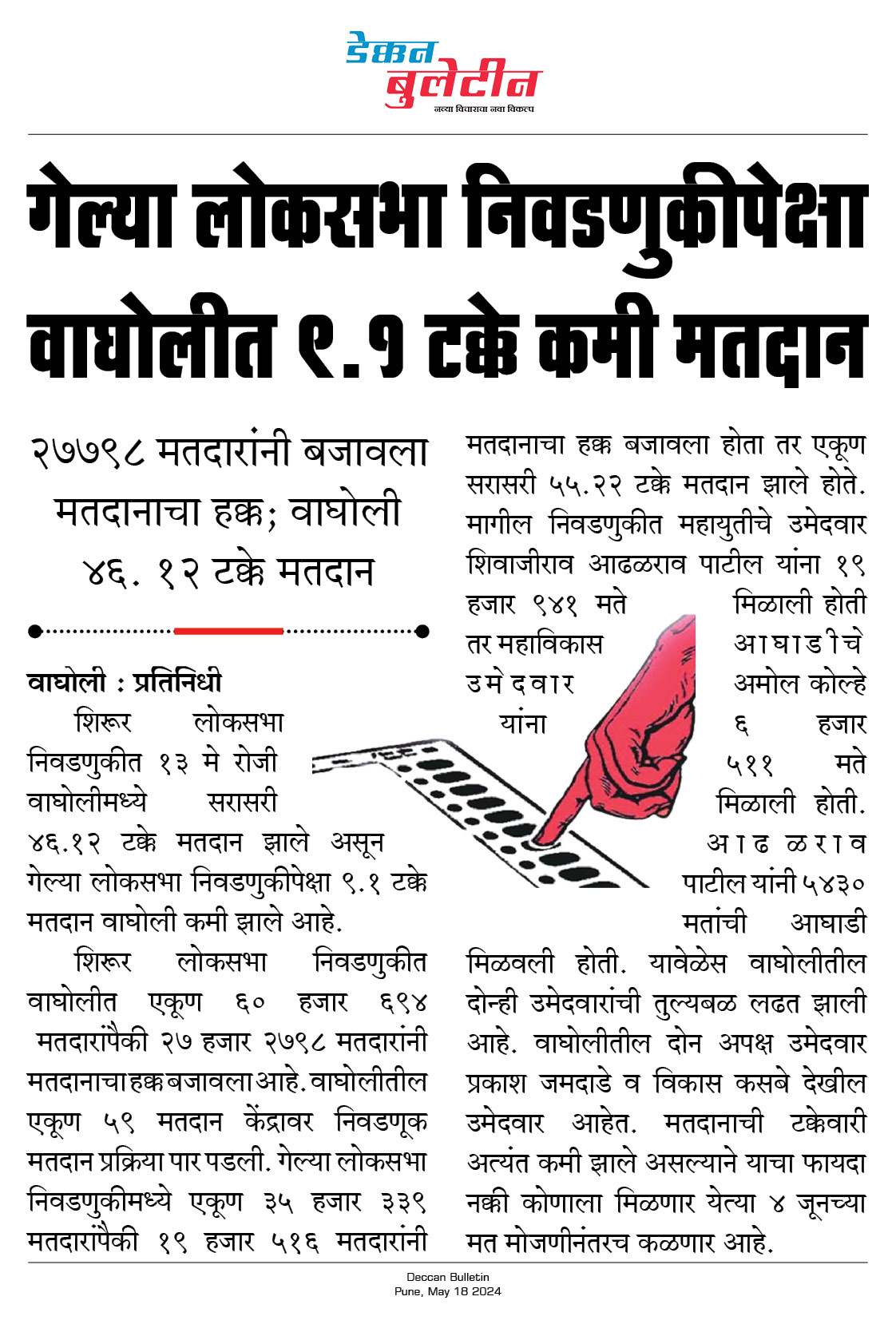 गेल्या लोकसभा निवडणुकीपेक्षा वाघोलीत ९.१ टक्के कमी मतदान